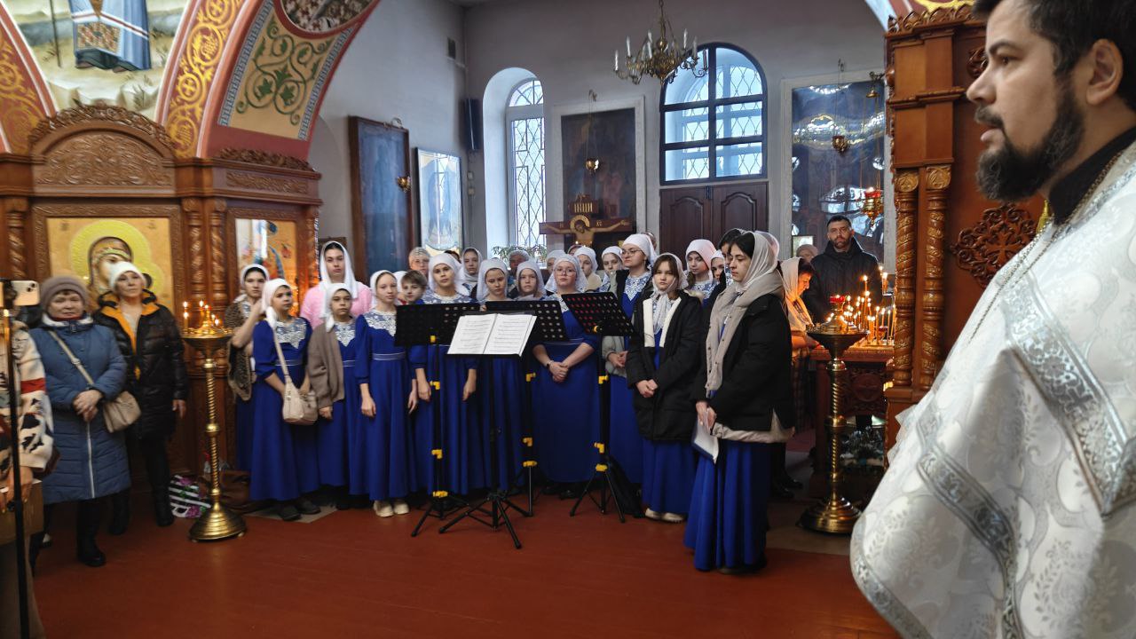 День начался с Божественной литургии, которую пел детско-юношеский хор «Благовест» под управлением регента Анастасии Григорьевны Половинкиной.